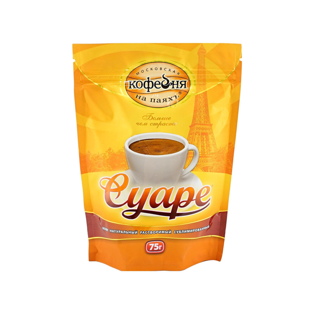 Суаре – это старательно подобранные сорта кофе из Колумбии и Бразилии, которые позволили создать букет мягкого, полного вкуса и насыщенного аромата. За чашечкой кофе «Суаре» (в переводе с французского языка означает «вечерний романтический ужин») вы окунетесь в атмосферу уютных парижских кофеен.