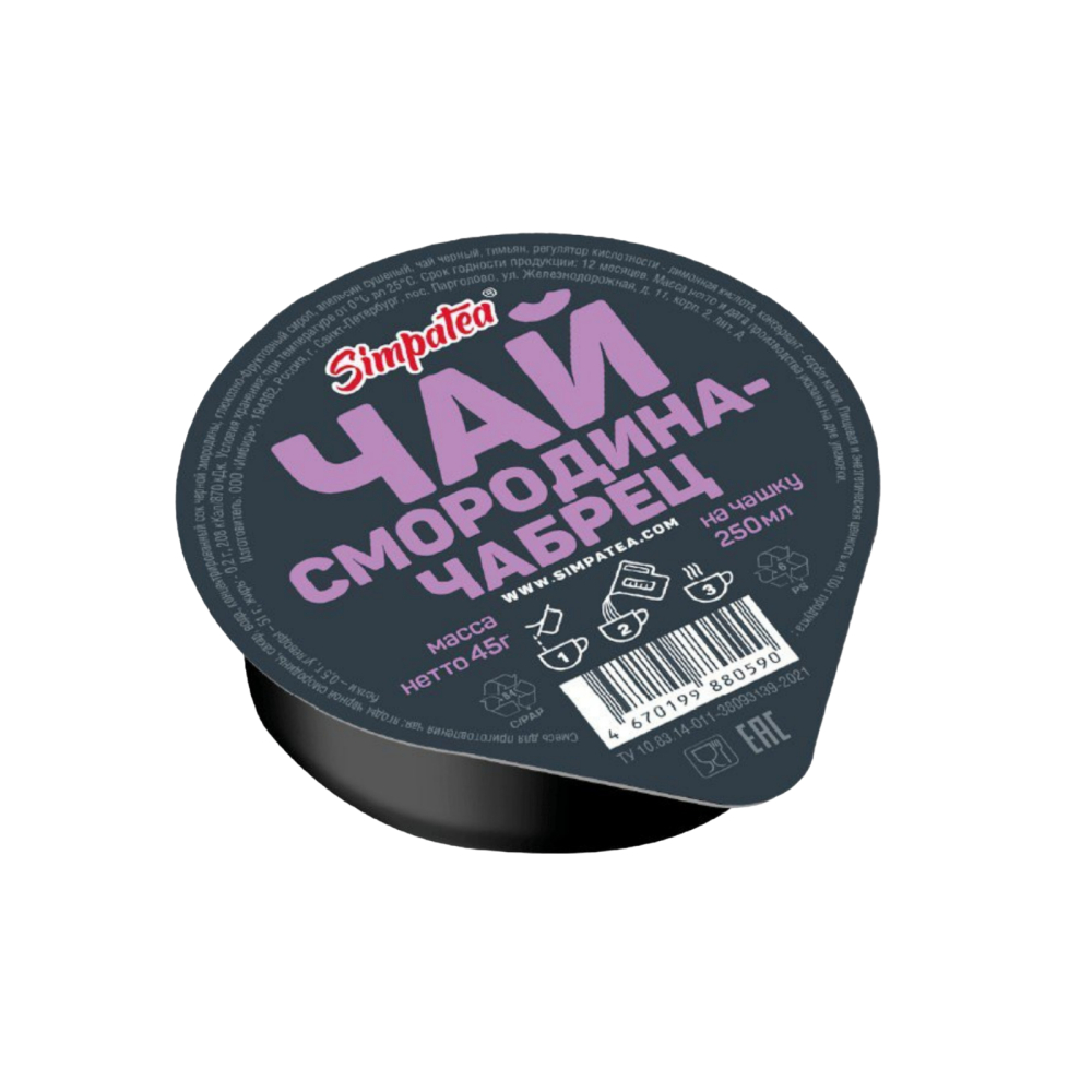 Мы придумали для ВасSimpaTea — готовая заварка на основе натурального чая и свежих ягод. Мы делаем вкусный, полезный и, самое главное, удобный продукт. Преимущества чайного напитка СимпаТи: Натуральный состав. В наших напитках нет искусственных добавок, только отборные чайные листья, свежие ягоды, фрукты и концентрированный сок. Длительный срок хранения. Благодаря соверменной технологии производства концентрированная заварка хранится 12 месяцев, не теряя вкусовых качеств, витаминов и полезных свойств ингредиентов. Удобство использования. Порционная упаковка позволяет быстро заварить напиток дома или в офисе, а также взять его с собой в дорогу.