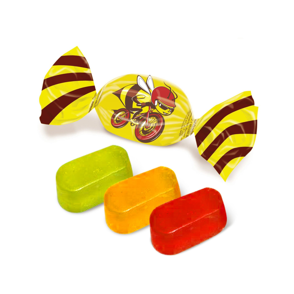 Желейные конфеты «Очумелый шмелик» – настоящее удовольствие для любителей ароматного жевательного мармелада. Неглазированные разноцветные брусочки с фруктовыми вкусами, в меру сладкие, плотные, упругие и в то же время мягкие. Три разных вкуса: лимон-лайм, черешня и грейпфрут. Хороши и к чаю и сами по себе.