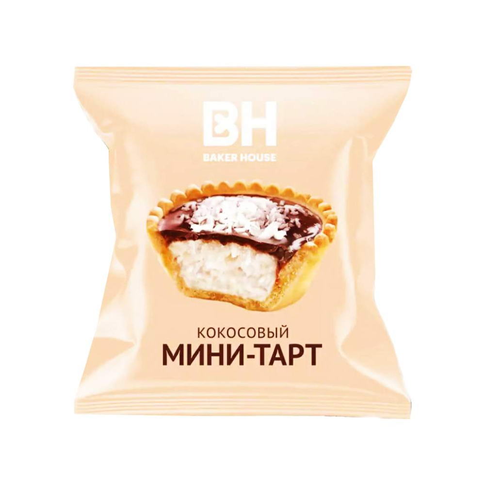 Мини-тарт с кокосовой начинкой от Baker House — это отличный вариант для любителей сладостей и к чаю. Песочная корзинка заполнена ароматным кокосовым десертом, который идеально подходит для угощения на любой праздник или уютный вечер дома.