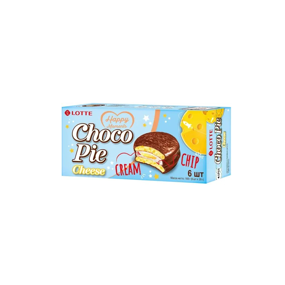 Choco Pie с уникальным сырным вкусом — 6 шт. Погрузитесь в мир непередаваемого наслаждения с Choco Pie в удивительном сырном исполнении! Этот уникальный десерт, который сочетает в себе мягкость сырного бисквита с хрустящими кусочками сырных чипсов, яркий сырный джем внутри воздушного суфле, сверху покрыт шоколадом, станет идеальным дополнением к вашему дню.