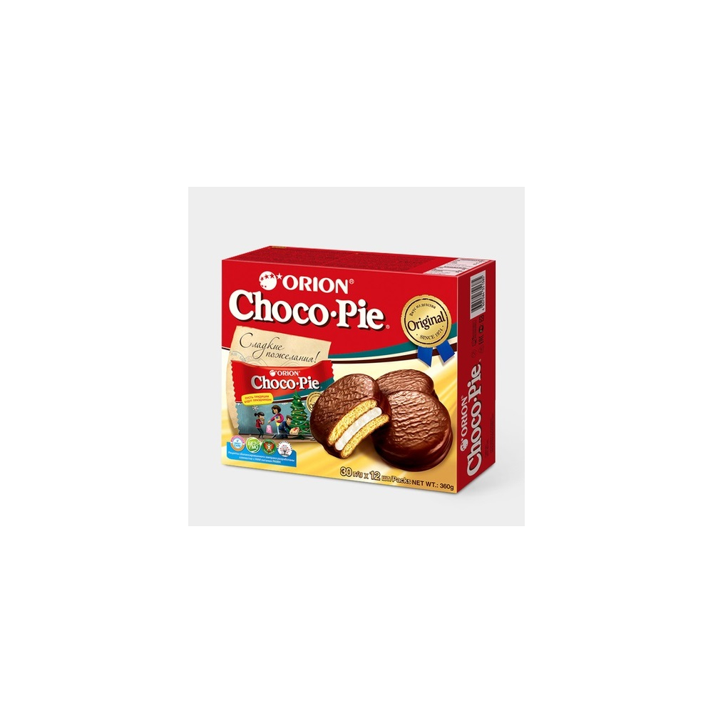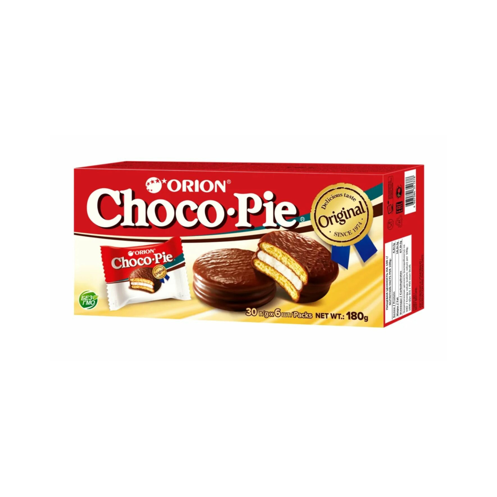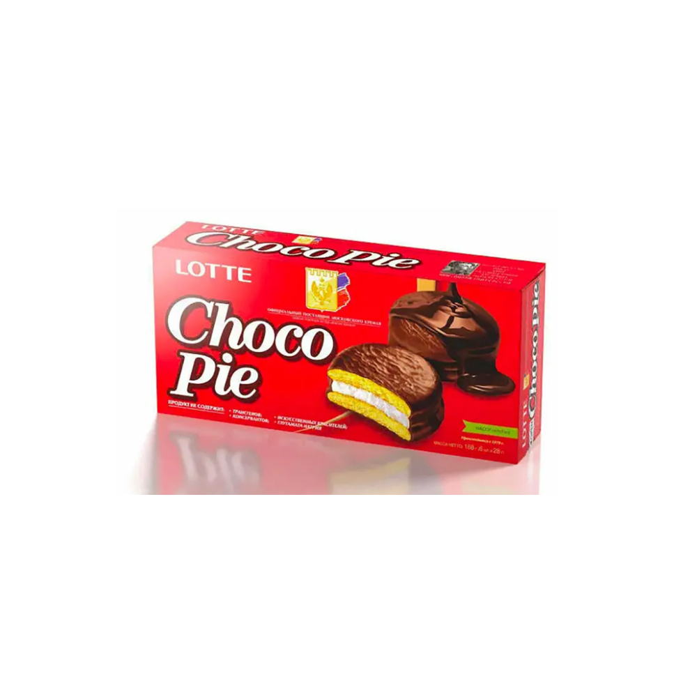 Ощутите знакомый с детства вкус печенья Choco Pie Lotte. Нежнейший бисквит с воздушной начинкой Marshmallow, покрытый шоколадной глазурью, буквально тает во рту. Благодаря индивидуальной упаковке каждого пирожного, вы можете взять Choco Pie Lotte с собой на работу или учебу. Продукт защищен от высыхания, не содержит консервантов, искусственных красителей и глутамат натрия.