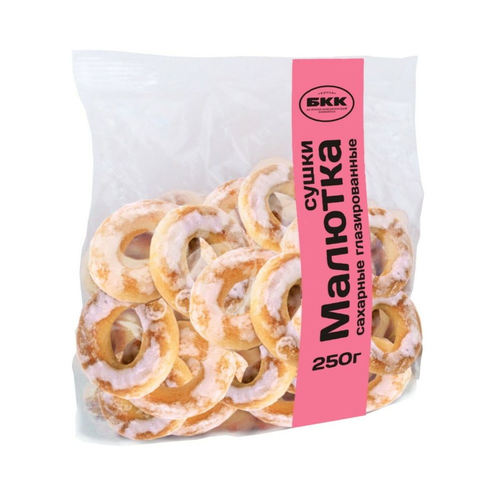 Сушки глазированные «Малютка» — классические сушки, покрытые сахарной глазурью. Тесто сладкое и достаточно мягкое, поэтому можно не переживать за здоровье зубов. Подойдут для домашнего чаепития и перекуса. Сушки изготавливаются из муки 1-го сорта, обладают нежным ароматом ванили. Глазурь для сушек делают из сахарного сиропа, а на производстве используют специальный барабан, чтобы покрыть сушки глазурью со всех сторон. Приятного чаепития !