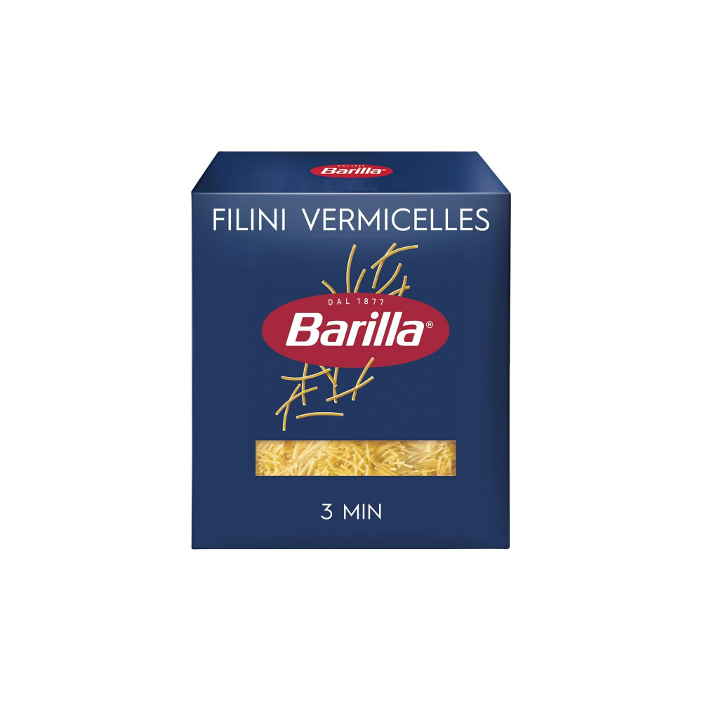 Макароны Barilla Filini Vermicelles № 30 – тонкая нитевидная паста, которая наилучшим образом смотрится в первых блюдах. Она отлично сочетается с мясным, куриным, рыбным бульоном и делает его более ароматным и сытным. В составе макарон Филини только два ингредиента: мука из твёрдых сортов пшеницы и вода, благодаря чему они не развариваются и не слипаются. Для приготовления пасты Barilla Филини понадобится всего 3 минуты, поэтому рекомендуется добавлять её в суп уже на финальном этапе. В процессе вермишель сохраняет форму и аппетитный вид.