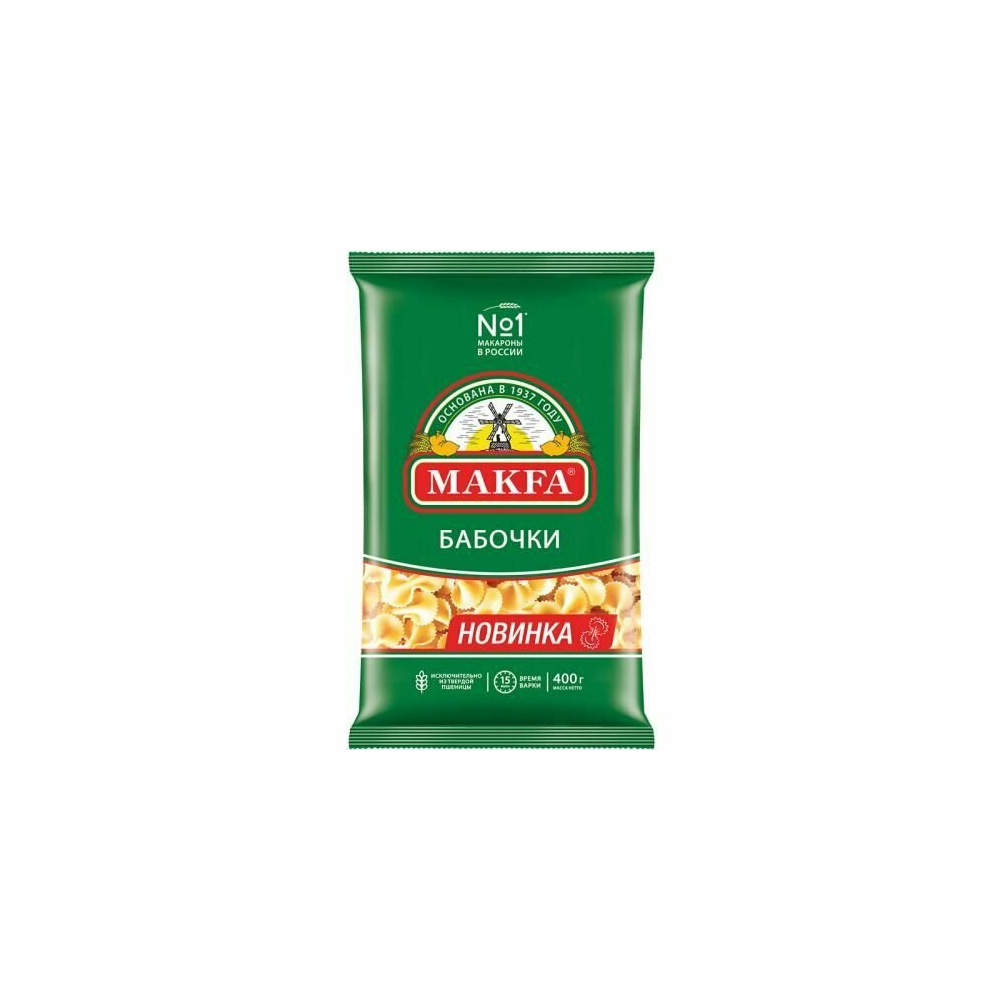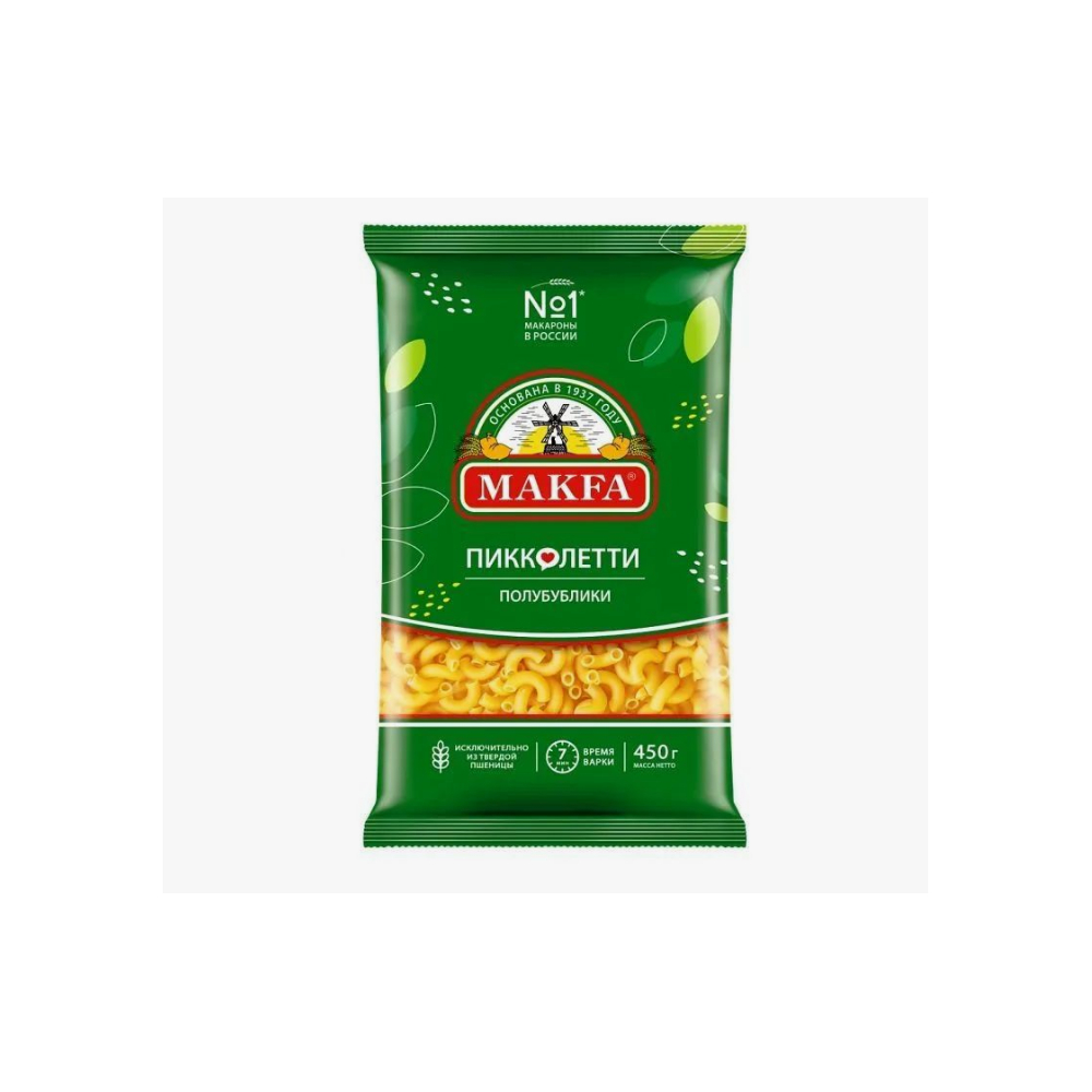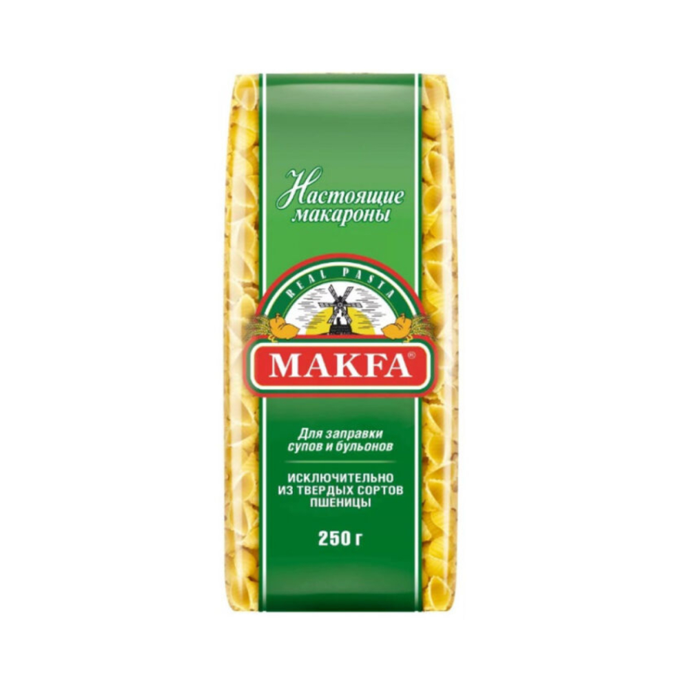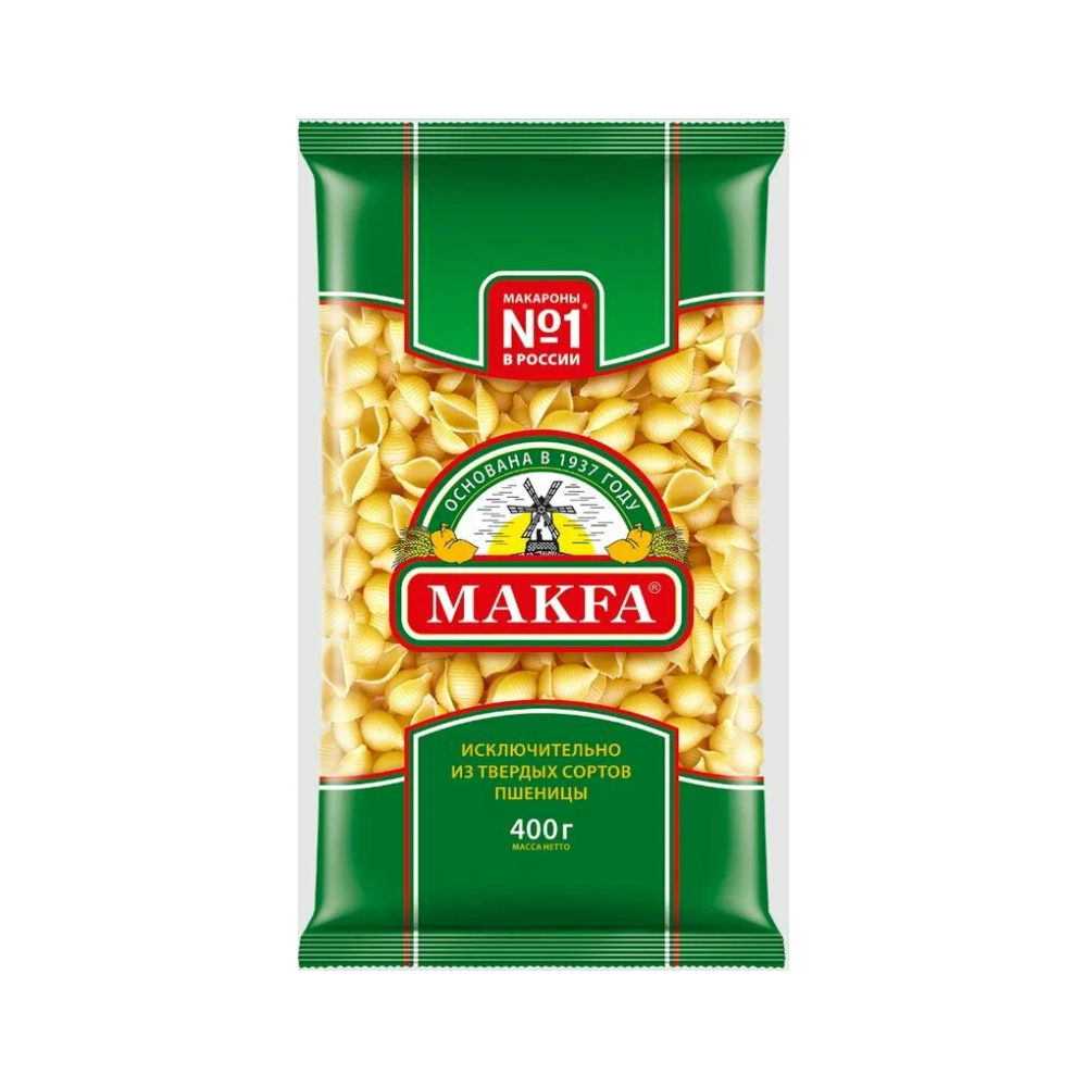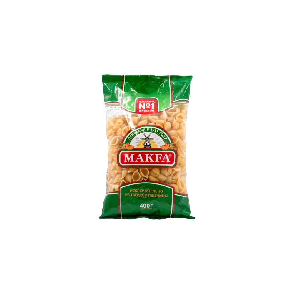 Макароны «Макфа» сделаны из муки твердых сортов, содержащей чуть меньшее количество клейковины, чем обыкновенная мука. Она хорошо поглощает воду, макароны из нее при варке увеличиваются и не развариваются. Форма — перья, в упаковке 400 г. Состав продукта: мука из твердой пшеницы для макаронных изделий высшего сорта, вода питьевая. Без пищевых добавок и красителей. Не содержит ГМО.