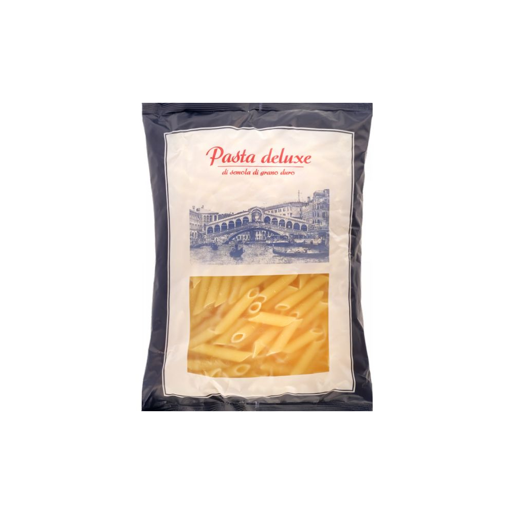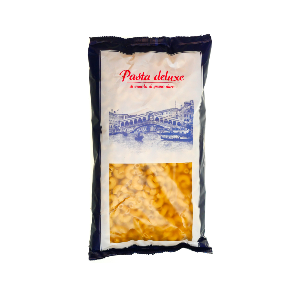 С рожками Pasta Deluxe ваша трапеза наполнится домашним уютом. Макаронные изделия из твердых сортов пшеницы, изготавливаются в лучших итальянских традициях качества. Эта паста раскроет свой вкус в сочетании с томатным соусом. Без пищевых добавок и красителей. Не содержит ГМО.