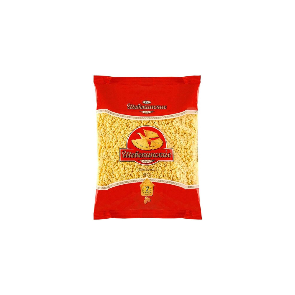 «Шебекинские» - вкусные макароны от одного из лидеров российского рынка макаронных изделий. Исключительно твердое зерно и кристально чистая вода, делают макароны «Шебекинские» такими полезными и питательными. Макаронные изделия богаты белком. Звездочки «Шебекинские» – не слипается и не разваривается, прекрасно подойдет для супа, молочных каш или запеканок.